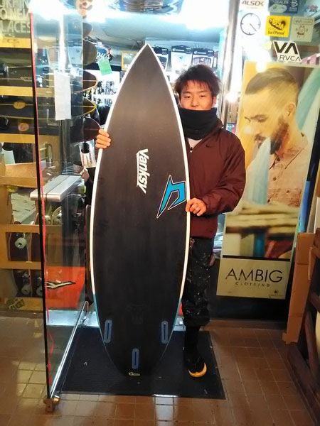 噂の最新マテリアル×GREEDモデルは異次元だよ〜 A君 JUSTICE/VANKSYシェイプ/GREED 5’9″×18 7/8×2 9/32 急上昇で上達しているので〜 今のレベルを更に引き上げてくれる 一本でテンション上がっちゃうね〜! RODFLEXでボトムブラックがこれまた お洒落〜!!若さと気合いで朝一から 頑張ってるのをサーフィンの神様は見てるからね〜 最短コースで上手くなる様に なんでもサポートするからね〜!! また朝一集合で!! JUSTICE GREED RODFLEX 究極の1.5mmハイパフォーマンスセミドライ! 良くあるコンディションで大活躍の〜!CHURRO 50/50〜!