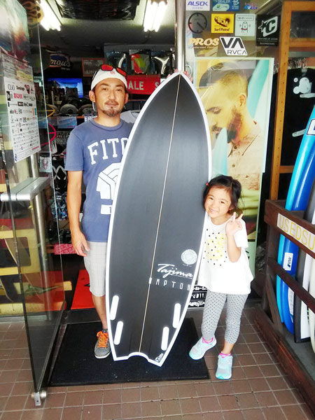 ボトムブラックスペシャルカスタムモデル!! O様 JUSTICE/田嶋シェイプ/RAPTOR 5’5″ 1/2×20 1/2×2 1/2 無敵テイクオフで〜 パフォーマンス性もしっかり感じて頂ける 一本として〜オーダーありがとうございます!! よく入るポイントの波質にピッタリの セッティングでカスタムオーダーしたので 持っただけで調子よさが伝わって来ました〜! ボトムブラックがめちゃくちゃクールでかっこいい! いい波乗りまくってくださいね〜 しっかりと細かく打ち合せさせていただいた一本だから〜! 年間通して一番使うウェットスーツ