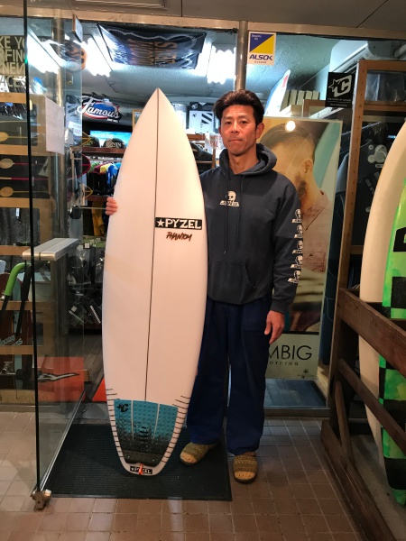 PYZELの大人気モデルはこれだ〜 H様 PYZEL/PHANTOMモデル 5’11 × 20 1/8 ×2 3/4 誰もが知るあの世界チャンピオンが愛用する ブランドの人気NO.1のこのモデルを選びました!! 日本のビーチブレイクでもテイクオフが 速く、スムーズな動きが特徴です!! この板で更にサーフィンの調子あげちゃって 下さいね〜 大人気のキラー限定シリーズで冬も快適にサーフィン 初めてのオルタナの初乗りは伊豆で〜