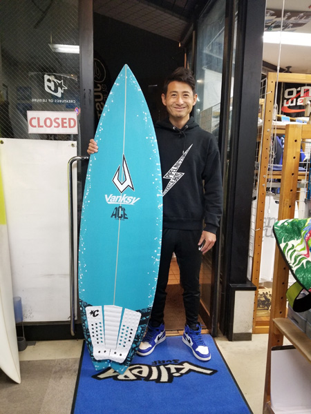 またまた、おかわりのおかわりで調子良い〜 K.T様。 justice THE ACE EPS 5’8 x 18 7/8 x 2 9/32 3本目、4本目とTHE ACEをカスタマイズし続け、 今回もEPSで、小波の試合を想定して勝てるボードをオーダーしました。 ジャスティスカップにギリギリ間に合いました。 これから調整してNSA公認試合、支部予選、全日本選手権と 勝ちまくって行きましょー! ターコイズブルーにホワイトディケールが良いですね! 激シブブラックモデル!快適にいい波乗りまくってくださいね〜! 人気のLIGHT SHELL!二着を使い分けでサーフィン快適だから〜!