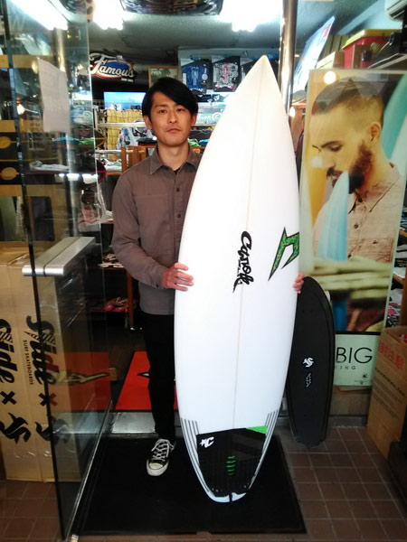 こだわりの一本が仕上がりました〜!!さらに調子上げてね〜! S様 ジャスティス/キャロルシェイプ/クランク 5’8″×19×2 1/4 現在お使いのボードの情報をお伺いして 良い所は伸ばして、足りない所は補うセッティングにしたから〜 今までより沢山波に乗りながら 加速するアップス〜キレのあるアクションが 手に入りますよ〜。これから夏! タイミングで海もご一緒させて頂いて 技術面もトータル的にサポートするから サーフィン絶対上手くなるよ〜! いい波沢山乗ろうね!! サーフィンが無いと駄目になったし〜!誰よりも海入ってるから〜! 家族でハッピーサーフィン!楽しむ一本をゲット〜!