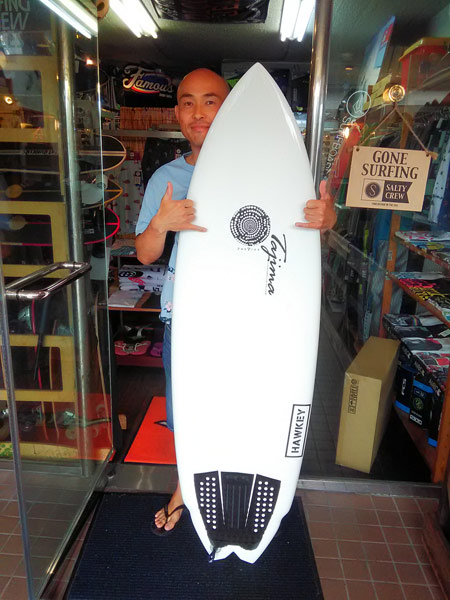 無敵ボードを手にしてしまいましたね〜!更に調子良くなっちゃう〜 I様 ジャスティス/FLEXFLY HAWKEY 5’8″×20×2 1/2 を手に入れて頂いてありがとうございます! 素早いテイクオフからクイックなアクション性! 更にはFLEXFLYマテリアルとの融合で 軽量で、丈夫、反応のいい板なので いままで以上に調子があがって〜 更にニコニコになっちゃいますよ〜 また海でお会いしましょうね〜!! 千葉ステーションでお受け取り〜 攻め系!人気モデルを〜!いい感じのサイズで上がってきました!