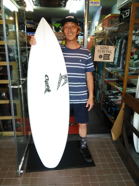 攻め系!人気モデルを〜!いい感じのサイズで上がってきました! CHAN38さん ジャスティス/キャロルシェイプ/クランクモデル 5’9″×19 1/2×2 3/8 バッチリのサイズの小波無敵ボードが仕上がりました〜! テイクオフの速さと操作性が 高次元で合わさっていて〜 メチャクチャ調子よさそうな一本です! 後は使って調子よさを聞かせてくださいね〜 海でおまちしております〜!! 無敵ボードを手にしてしまいましたね〜!更に調子良くなっちゃう〜 青空の元受け取ったら即入水
