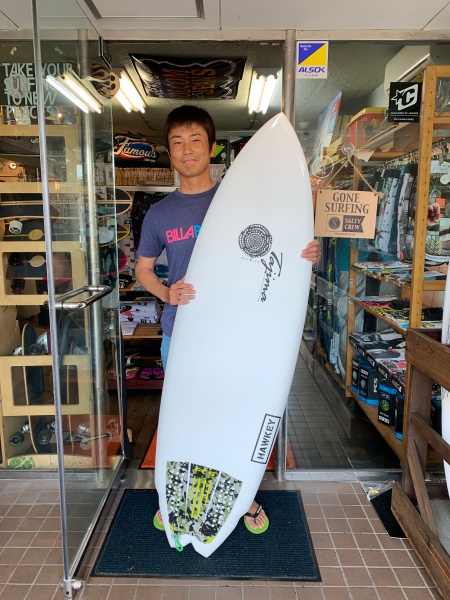 サーフィンの調子が更に上がる無敵のボード!! O様 JUSTICE / HAWKEY FLEXFLY 5’10 × 20 1/4 × 2 5/8 テイクオフがすごく、アクション性もバッチリ!! 更にFLEXFLYなので、軽いのはもちろんのこと 頑丈で反応の良い板!! このサーフボードで更にサーフィンの調子が上がること 間違い無いですよ〜!! この無敵ボードでたくさん良い波乗ってくださいね〜 サイズもぴったりで最高のウェットスーツ〜 お洒落なロンスプ〜