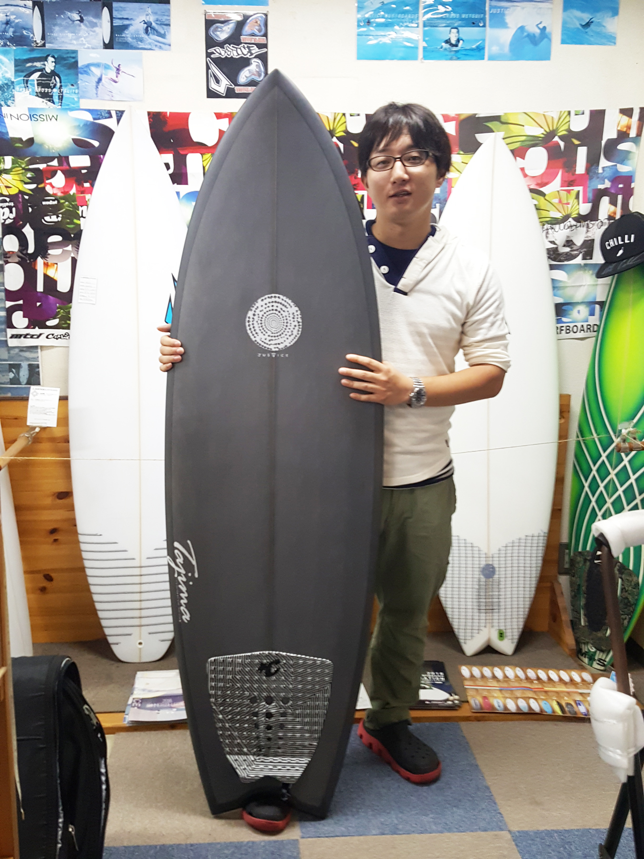 レベルアップ間違い無し! 常原さん。 justice RAPTOR 5’8 x 20 1/2 x 2 11/16 今までオールラウンドのボードに乗っていましたが、 「もっと沢山波に乗りたい」 「練習量を増やしたい」 と言う事でこのモデルを選びました。 格段に早いテイクオフで ガンガン波に乗ってステップアップして下さいね! justice RAPTOR キラー限定カッコいい〜! めっちゃカッコいいカラーリング!