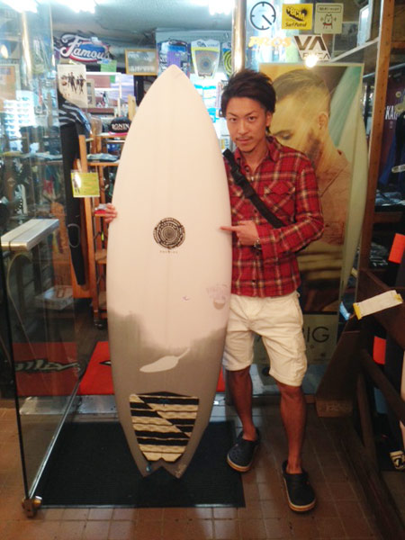 テイクオフ速くてキュンキュンに動くマジックボード! M様 JUSTICE/CHILLIシェイプ/PINACOLADA 5’7″×20 1/4×2 1/2 忙しくて海に入る回数が減っても 沢山波に乗って楽しんで頂ける様に サイズ調整からモデル選びまでさせていただきました! 力無いブレイクでもテイクオフ速くて なおかつ動きもいい、話題のモデルなので 今まで以上に調子上げて頂けますよ〜 これからも仕事、家庭、サーフィン 充実した毎日を送って楽しもうね〜 JUSTICE PINACOLADA リアルサーファーのお父さんを目標に! 中学生もセミドライは SHELL が好き