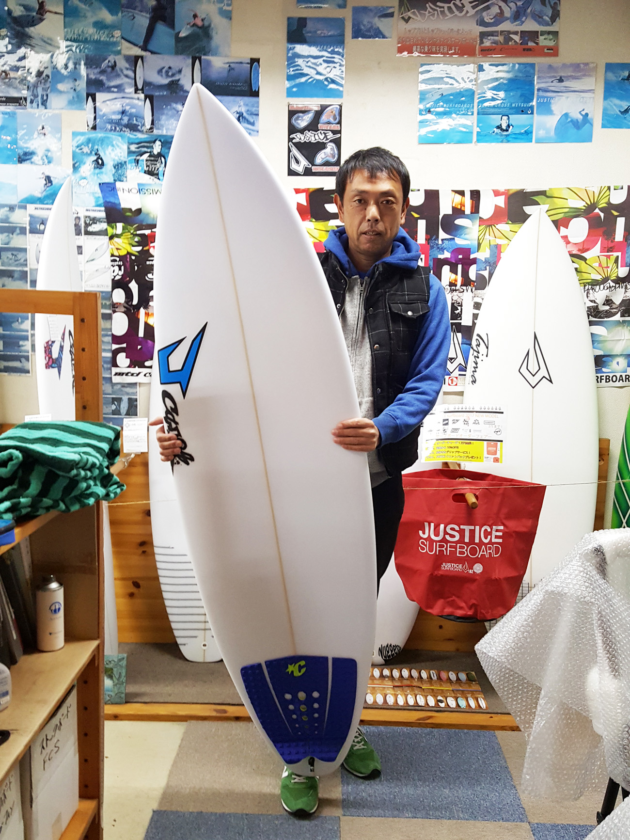 2016年最後の引き渡し BUZZ 世古口さん。 justice BUZZ 5’11 x 20 1/8 x 2 17/32 2本目のおかわりBUZZちゃん。 オーダー有り難うございます! 年末ギリギリの最終で、 間に合って良かったですね! このコーナーの今年最後のお客様の声になりました。 年明けはこのボードで思い切り楽しんで下さい! justice BUZZ セミドライで冬のサーフィン楽しんじゃいましょう! 信頼のJUSTICEキャロルシェイプ!Buzzモデル!!