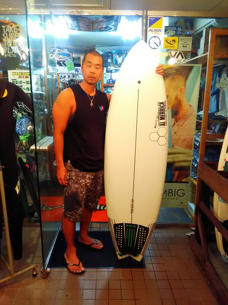 夏だし!すぐ乗りたい!調子が上がるマジックボード! O様 AL MERRICK PODMODサンダーボルト 6’2″ x 21 3/8″ x 2 3/4” お買い上げありがとうございます! シーズンインしてすぐ乗りたい〜 って色々探して頂いておりましたが イメージしたボードがあり 即決めしていただきました〜! このボードがあれば、沢山波にのって 今まで以上に調子を上げて サーフィンを楽しんで最高な気分に なる事!まちがいなし! 使ったら調子聞かせて下さいね〜 AL MERRICK PODMOD 爽やかサーファーにピッタリクールデザインウェットスーツ!! 遠いところご来店いただきありがとうございます!