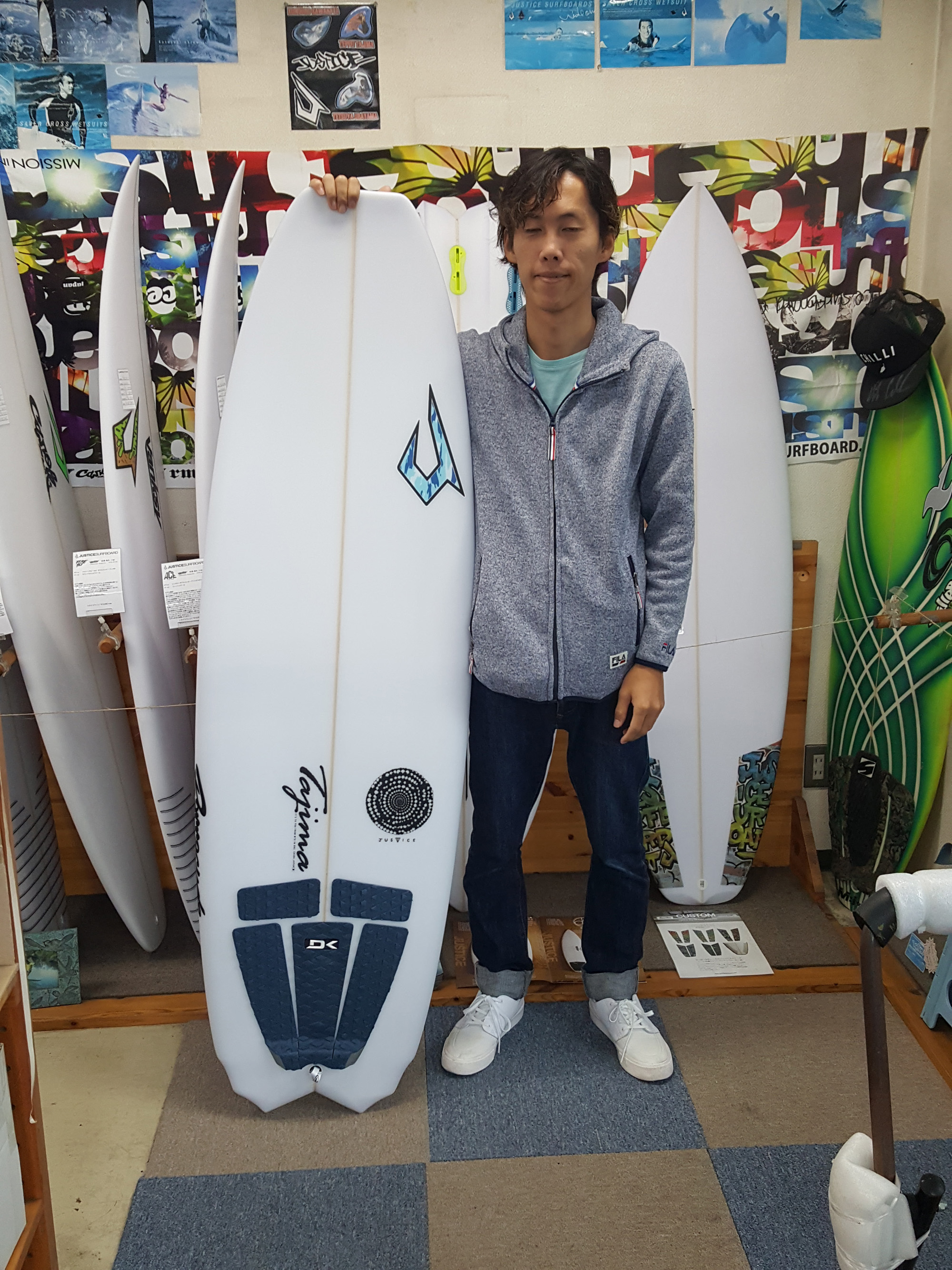 早速湘南で良い波に乗っちゃって下さい! 原野様。 justice BARRACUDA 5’6 x 19 7/8 x 2 13/32 静岡からのオーダー、ご来店有り難うございます! サーフィン歴はまだ浅いですが、 このボードで楽しく上達して行きたいと言う事で サイズを調整しました。 早速このまま湘南へ行って初下しをするそうです。 楽しんで下さいね〜! justice BARRACUDA 自分にあった浮力でスピードアップで調子もアップ!カスタムオーダーボード! オールブラックSHELLが大人だよね〜!