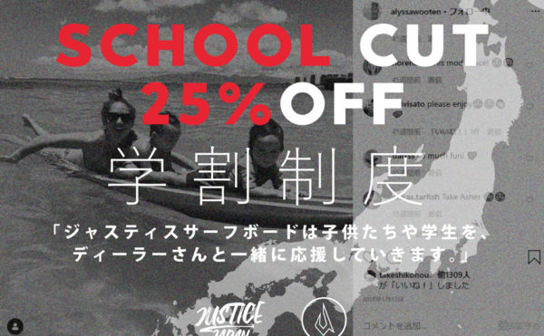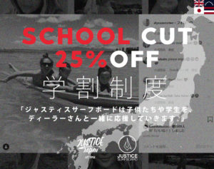 2021年5月24日東京店BLOGkillersurf13 サーフボード 学割あるって知ってた〜!?皆さん知ってましたか〜? ジャスティスのオーダーって、 実は学割があるんですよ〜! これね〜、 意外と知らない人が多いんですよね〜! 学生さんやその親御さんを応援する制度で 25%の割引になるんですよ〜! ジャスティスに […]