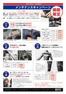 2020年7月14日東京店BLOGkillersurf13 気付けばあと2週間で終了ですよ〜BEWETが年一で行っている メンテナンスキャンペーン! 冬の大切なセミドライ、ブーツ付きのドライスーツを この期間にメンテナンスをして また来る冬に快適なウェットを着て過ごせる様 備えましょう! &nbs […]