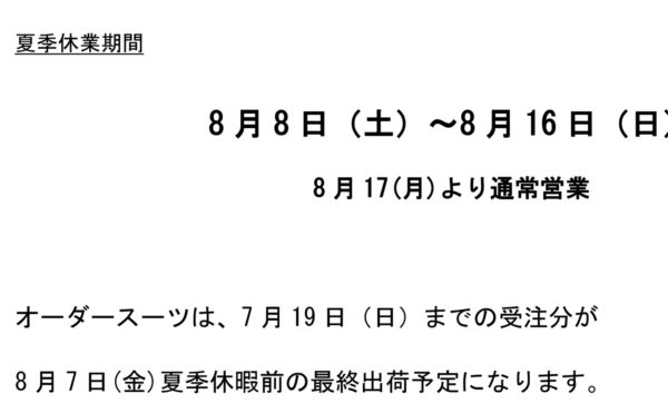 2020年7月15日新着情報killersurf13 BEWET お盆休み前に仕上げたい方は急いで下さ〜いBEWETから夏期休業のお知らせがきました〜! 8/8〜16まで工場がお休みになるので、 その前にウェットを仕上げたい方は 7月19日までにオーダーして下さいね〜! 7月19日までにオーダーされた方は 8月8日までにお店 […]