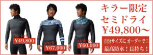 2019年12月4日新着情報killersurf13 キラー限定セミドライはフルオーダーで¥49,800〜!!この時期のサーフィンには絶対必要な〜セミドライ!! セミドライスーツは絶対フルオーダーがいいです!! 理由は〜 着ている時にゴムが伸びきらないでピッタリで 体を動かした時に伸びるから〜断然ウエットの持ちが違います!! し […]
