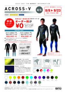 2020年8月8日東京店BLOGkillersurf13 真冬のウェット 早期オーダーキャンペーン始まった〜夏真っ盛りの猛暑日が続いてますが、 BEWETから早くも セミドライのオーダーキャンペーンが 始まりましたよ〜! エントリーのファスナーシステムが オプションで選べるACROSS-Vモデル。 エントリーがJ-FLAP X […]