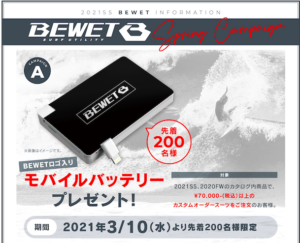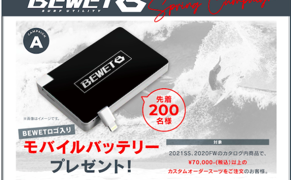 2021年3月9日湘南店BLOGkillersurf13 BEWETキャンペーン明日からスタート!春に向けて準備始めましょ〜!!(えはっち)BEWETのキャンペーンが明日からスタート! 先ずは先着200名限定! 税込¥70,000-以上のウェットオーダーの方に 何とモバイルバッテリープレゼント♪ 続いて日々コロナ等と戦ってくれている 医療従事者の方に向けた応 […]
