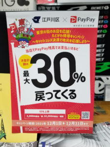 2021年12月12日東京店BLOGkillersurf13 一万円までの商品は30%OFFですよ~今月いっぱいの期間で開催している PayPayのキャンペーンは~ 一万円までの価格の商品が実質30%Offになりま~す! 例えば~ ¥7,150のデッキパッチを買ったとしたら ¥2,145のキャッシュバックがありますよ~ […]
