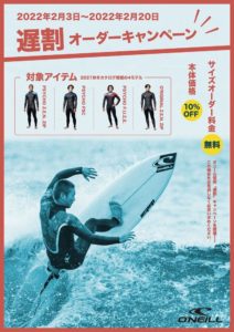 2022年2月19日東京店BLOGkillersurf13 20日最終日に駆け込みでトリプルお得って~2/3から始まったオニールの 遅割オーダーキャンペーン~! 気付けば明日が最終日~でした💦 これは冬物セミドライのキャンペーンですが 毎年恒例にもなってます~🎶 でもね~今回いつもとはちょ […]