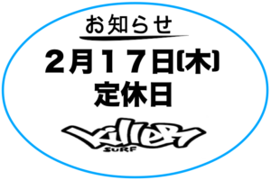 2022年2月15日新着情報killersurf13 キラーサーフ湘南店からお知らせ!今週の木曜日もお休みです!キラーサーフ湘南店から大事なお知らせです! 先週に引き続き、冬シーズンという事で 2月17日(木)はお休みを頂きます! ご理解の程、宜しくお願い致します!
