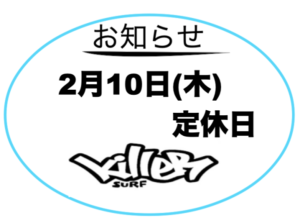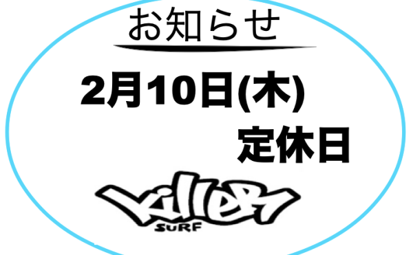 2022年2月8日新着情報killersurf13 キラーサーフ湘南店からお知らせです!!キラーサーフ湘南店 冬シーズンという事で 今週の2月10日(木)はお休みを頂きます! ご迷惑をおかけ致しますが ご理解の程、宜しくお願い致します。