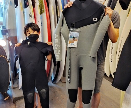 2022年5月28日ウェットスーツお客様の声killersurf13 親子でサーフィン楽しんじゃいますよ〜!BEWET FREE SHOULDERフルスーツとキッズ用フルスーツが届いて〜準備万端!試合も出る位のバキバキのかっこいいお父さんに〜追いつく様に〜、かっこいい未来のサーファーになってね!いい波沢山のってね〜!