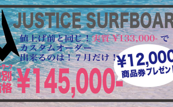 2022年7月2日新着情報killersurf13 遂にですね〜!待ち切れなくてフライングの方も〜(えはっち)7月がスタートして〜 サーフボードの価格改正がされました! キラーサーフでは7月限定企画として お得にオーダー出来るキャンペーンが 始まったので是非チェックお願い致します! 〈お得なキャンペーンの詳細はこちら!〉 そして […]