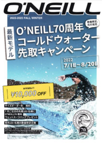 2022年7月2日東京店BLOGkillersurf13 冬物商戦始まりました~この冬のウェットスーツから 各社値上げになりますが まずはO’NEILLが先行で キャンペーンを始めましたよ~! 8/20日までの期間で オーダー料無料! 本体価格より¥10,000割引!! 先着順でオニール […]