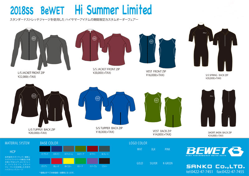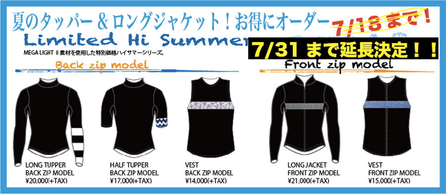 ※HI SUMMERショートジョンはプラス¥10,000-でロングジョンに出来ます。