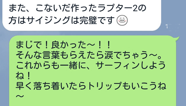 ラプター使用の嬉しいお言葉LINE〜!いろんなマテリアルで楽しめます!(碇谷店長)