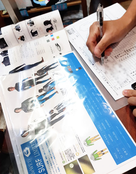 只今の納期は3mmジャージのフルスーツで2〜3週間