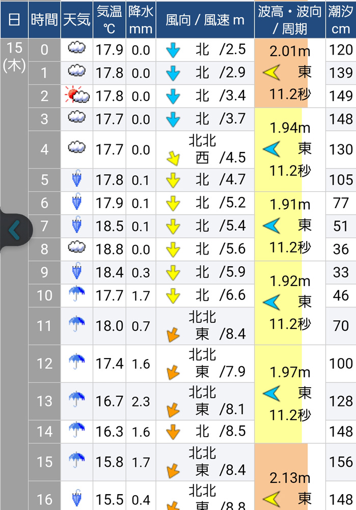ん〜、やっぱり風は北東で強いっぽいな〜。