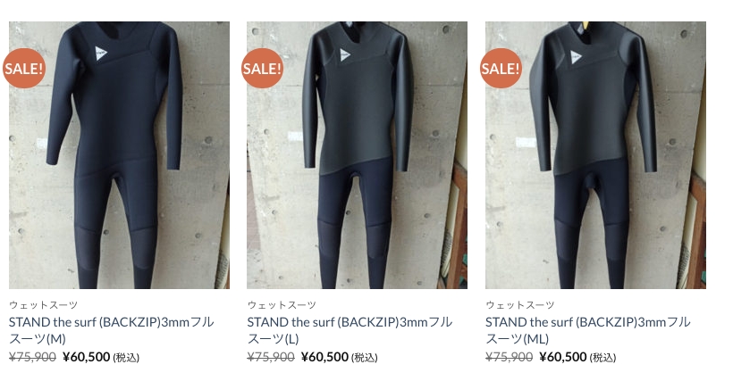 3mmフルスーツのみのストック在庫ですが