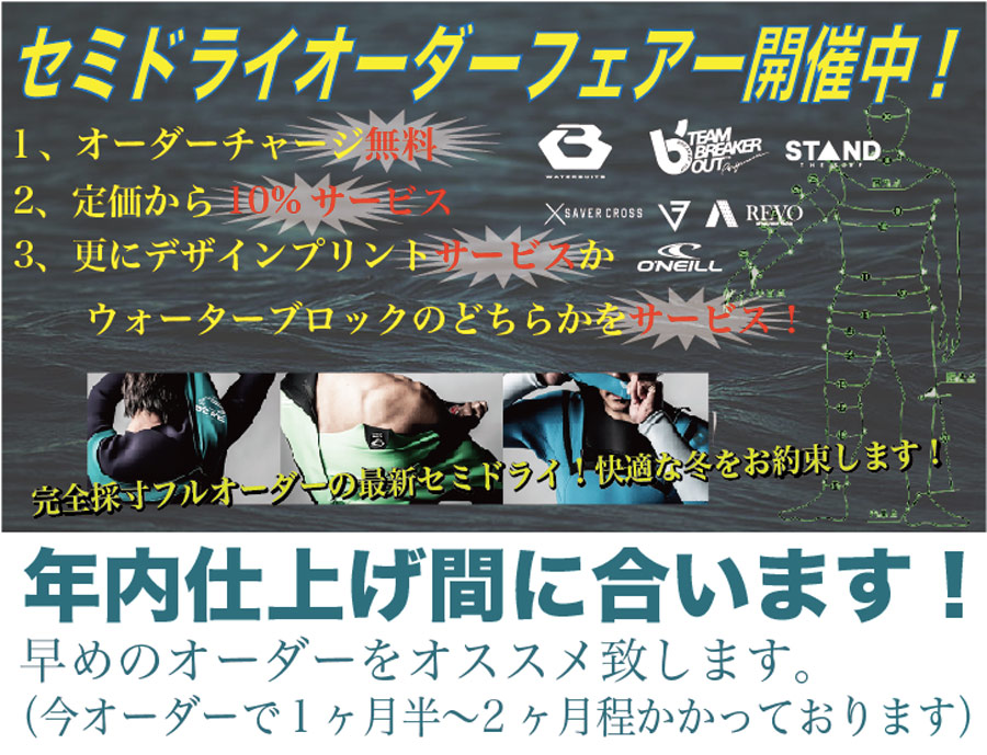 冬もいい波乗る為に快適セミドライ!オーダーで年内納期可能です!(碇谷店長)