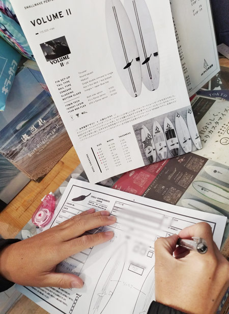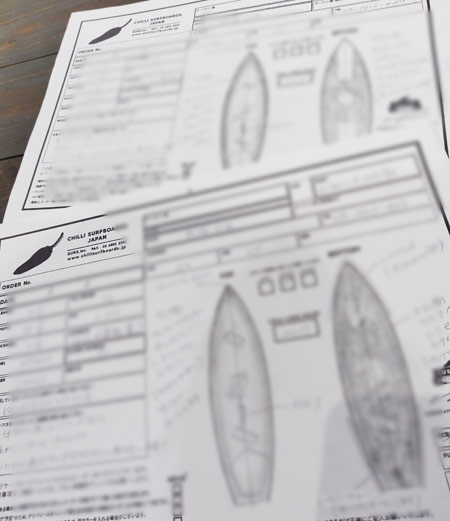 CHILLIサーフボードは¥115,000でフルオーダー出来るんだよ〜(碇谷店長)