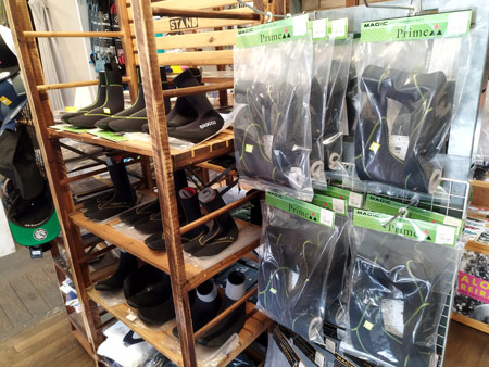 ブーツ&グローブがあれば、常夏だよ〜!今年は在庫が少ないから早めに〜(碇谷店長)