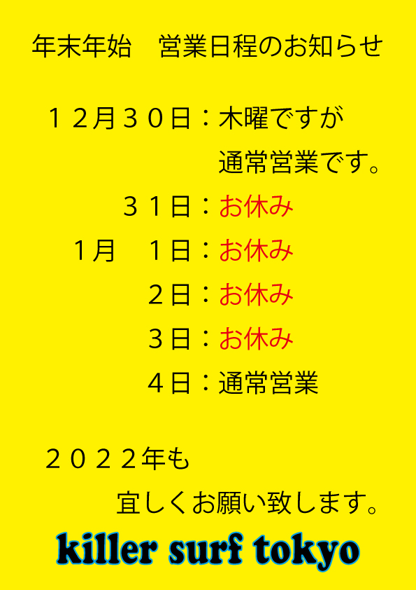 そして31日~1月3日までがお休みになります。