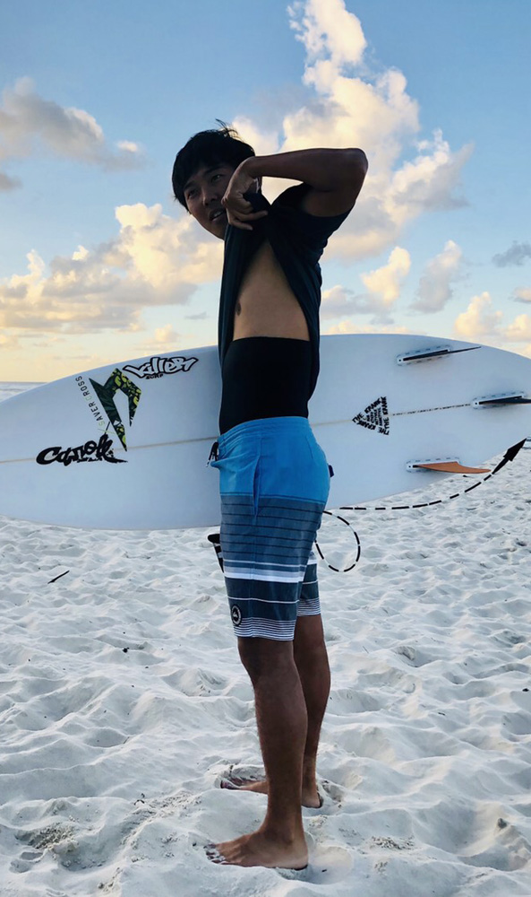 夏にはボードショーツ(海パン)の中に履いて