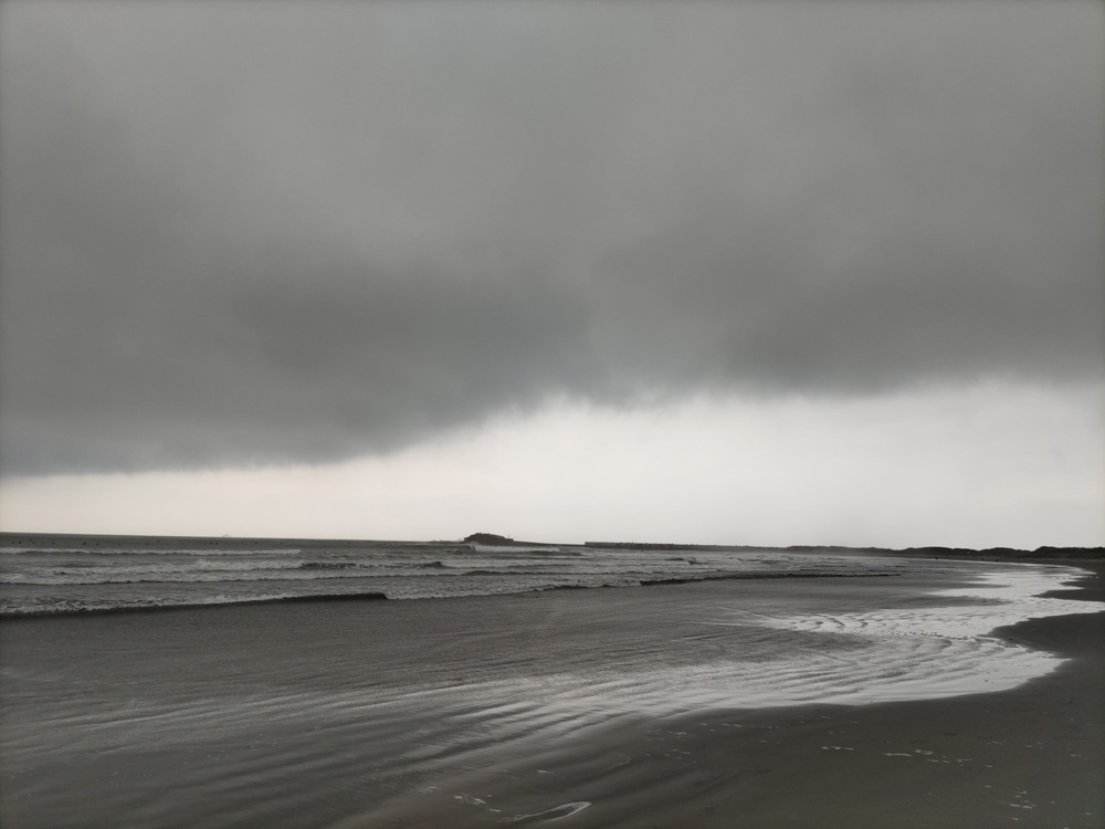 朝は無風で面ツル良い波で~巨大な雲が北東風を連れて来た~