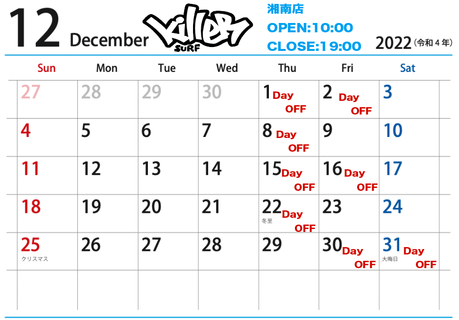 サーフボードの年内発送は〜!年末年始のお休みに!!(えはっち)