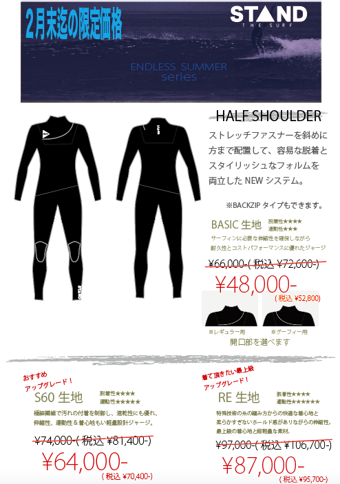 値上げ前に!春物ウェットスーツオーダー受付開始します!(えはっち)
