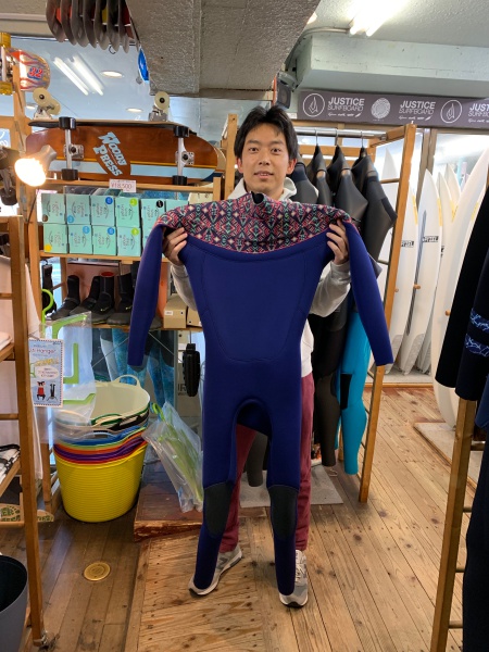 キラー限定1番人気はこれだ〜 N様 SAVER CROSS KILLER LIMITED SHELL 3mmフルスーツオーダーありがとうございます!! ベースはネイビー、フラップにオルテガ柄を入れて すごくいい感じに仕上がりましたね〜!! 実際に着て頂き、ご満足いただきました!! この快適ウェットでいい波たくさん乗って下さいね〜 初のオーダーがJUSTICE SURFBOARD!! 人気マシンで!更にいい波のって〜!今年の夏はハッピー!